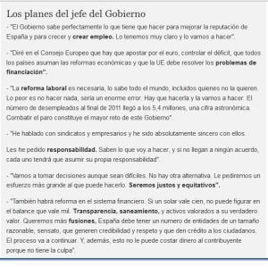 El Períodico El País publica un artículo en el que nos resumen los planes del «Jede de Gobierno». Entre sus principales planes se encuentra la inminente Reforma Laboral, sin concretar ninguna de las más que conocidas y duras medidas para el trabajador que hasta el momento ha preferido desvelar mediante la voz de sus camaradas: la CEOE/CEPYME.