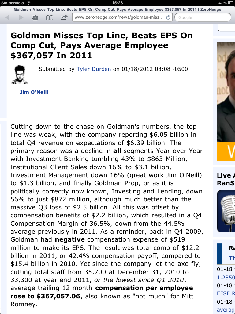 Goldman Sachs: cada empleado se lleva 367.000 dólares