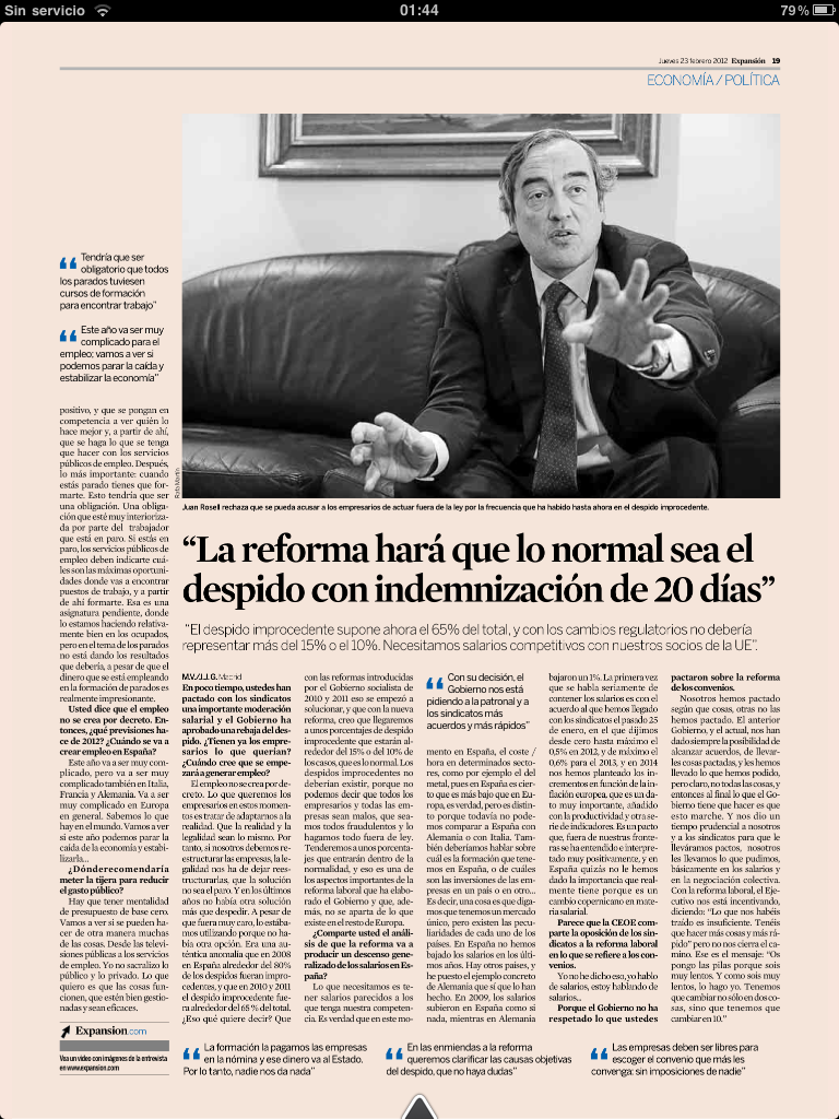 Rosel (CEOE): Lo normal será el despido con indemnización de 20 días