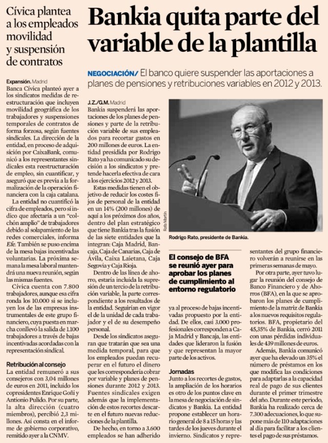 Banca Cívica suspende contratos de manera forzosa y Bankia suspende las aportaciones a planes de pensio nes