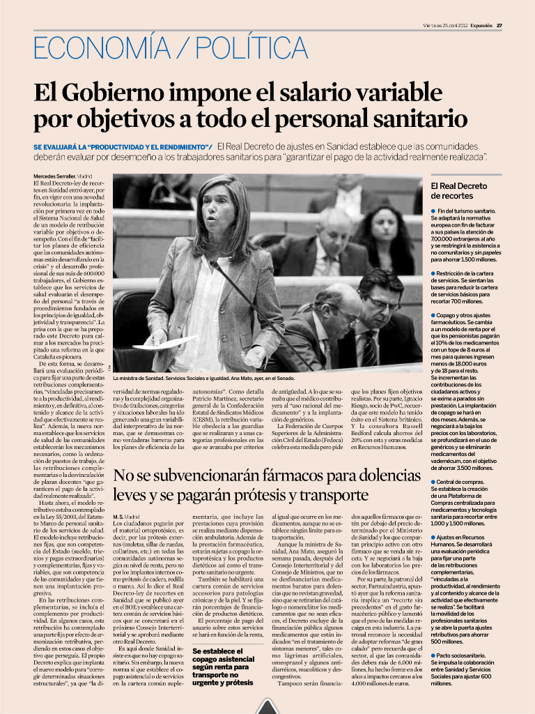 El Gobierno impone el salario variable por objetivos a todo el personal sanitario
