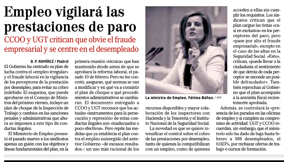 La Inspección de Trabajo pasa por alto el fraude empresarial y perseguirá a los parados