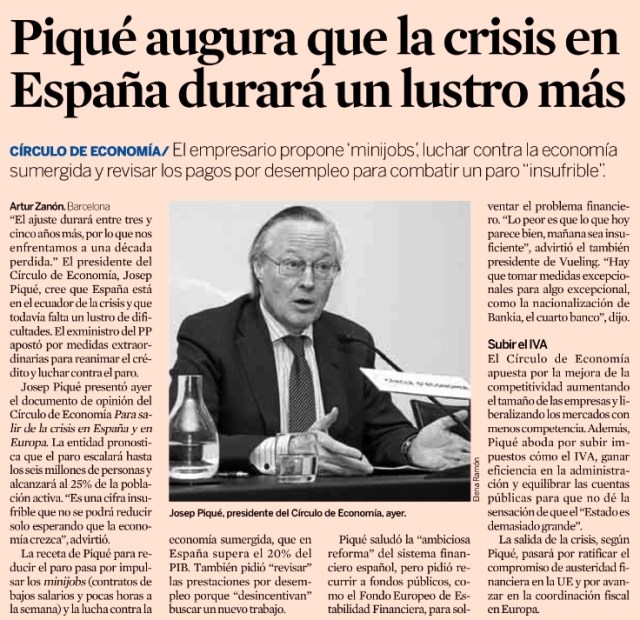 Piqué propone los minijobs y revisar el desempleo
