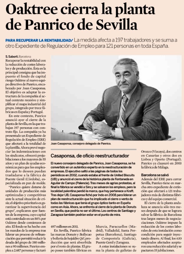 Panrico cierra la planta de Sevilla (197 trabajadores) y presenta un ERE en el resto de España