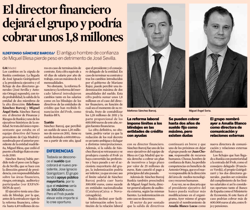 Indemnización de 1,8 millones de euros para el director financiero de Bankia