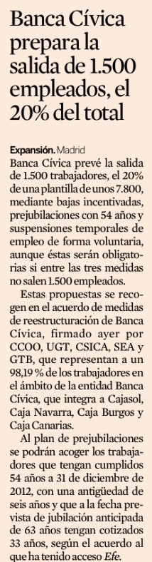 Banca Cívica prepara la salida de 1.500 empleados, el 20% del total