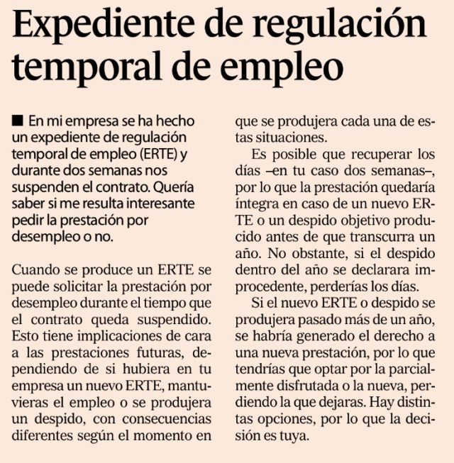 «En mi empresa se ha hecho un ERTE y durante dos semanas nos suspenden el contrato»
