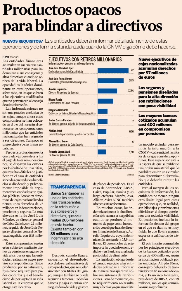Indemnizaciones millonarias: nueve ejecutivos de cajas nacionalizadas acumulan derechos por 97 millones de euros