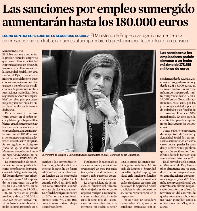 Las sanciones por empleo sumergido aumentarán hasta los 180.000 euros