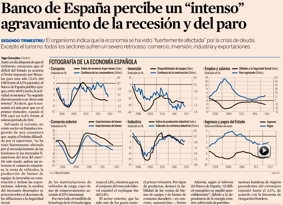 El Banco de España percibe un «intenso» agravamiento de la recesión y del paro