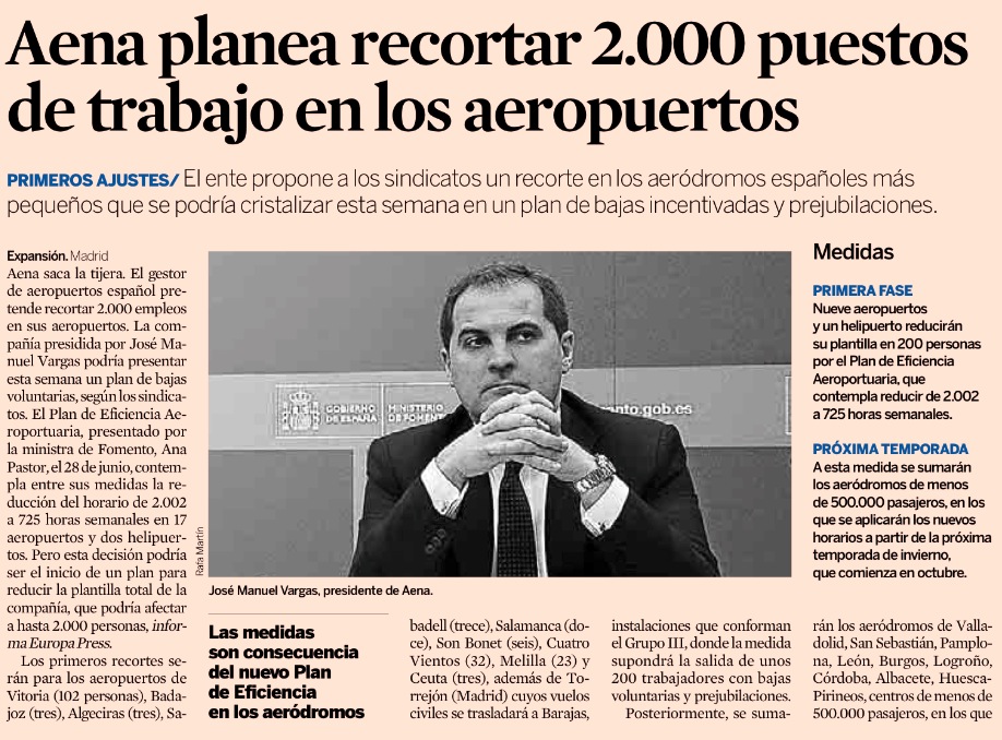 Aena planea recortar 2000 puestos de trabajo en los aeropuertos