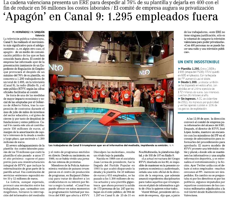 Canal 9: 1295 empleados fuera
