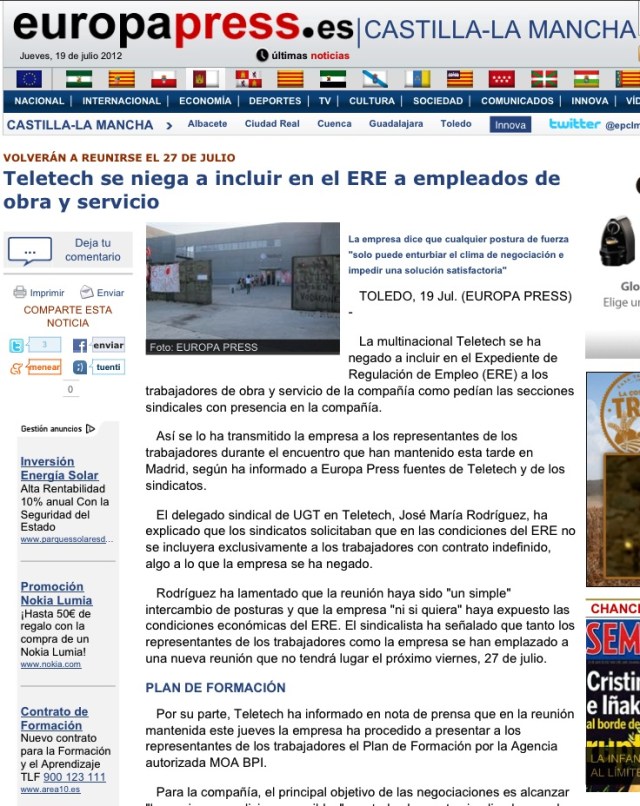 Sigue la noticia en Europa Press: http://www.europapress.es/castilla-lamancha/noticia-teletech-niega-incluir-ere-trabajadores-obra-servicio-piden-sindicatos-20120719185022.html