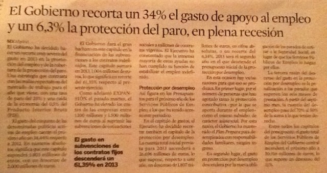 El Gobierno recorta un 34% el gasto de apoyo al empleo y un 6,3% la protección del paro