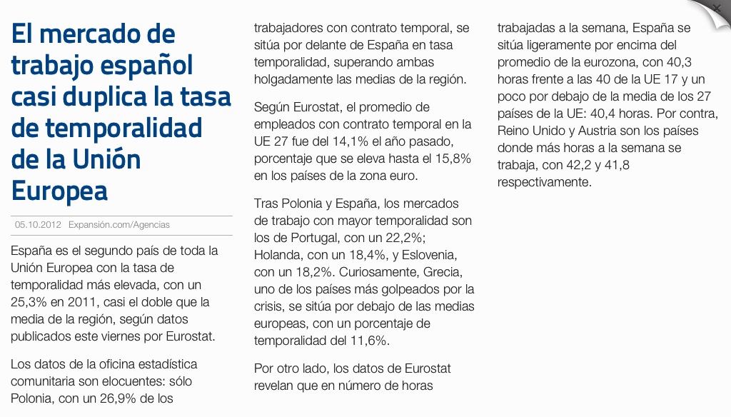 El mercado de trabajo español casi duplica la tasa de temporalidad de la Unión Europea