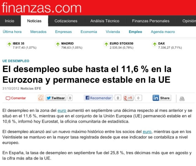 Según Eurostat la tasa de desempleo en España en el 25,8 %, la cifra más alta de la UE.