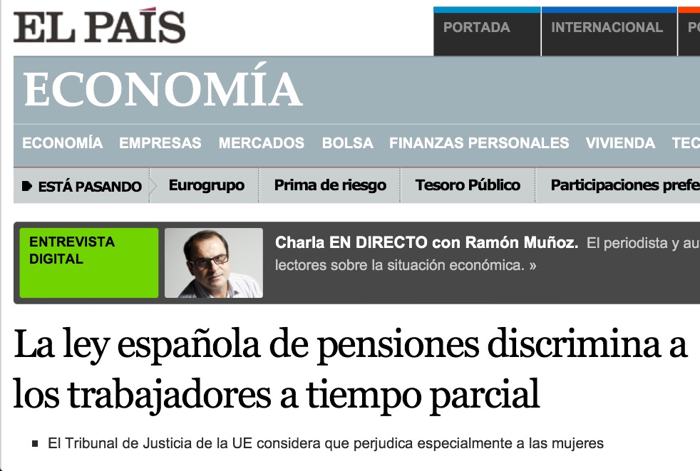 El Tribunal de Justicia de la Unión Europea ha dictaminado este jueves que la normativa española sobre pensiones discrimina a los trabajadores a tiempo parcial, que en su mayoría son mujeres, ya que les exige un periodo de cotización proporcionalmente mayor al del resto de contribuyentes.