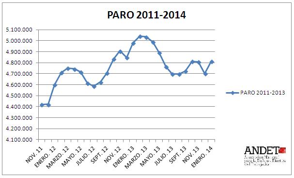 El dato de paro sigue la tónica habitual de los eneros: fuerte subida del desempleo, en 113.097 personas; desde el comienzo de la crisis la subida del paro en enero no es nunca menor de 100.000 personas (aunque en esta ocasión el aumento es el menor desde 2007).